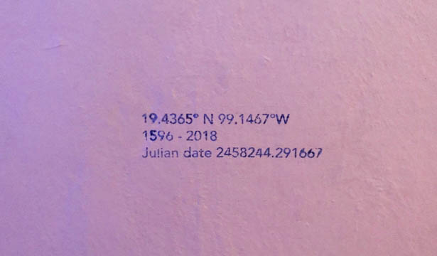 Circuito celeste: los tiempos del cielo y de la oscuridad e Régua do Tempo (1596 – 2018) - data Julian: 2458283,513889 (2018)