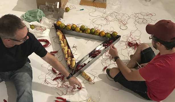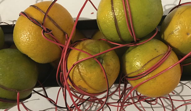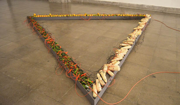 Série de máquinas de choque aqui associadas aos Toqueros e suas caixas de choque, atividade tradicional no centro histórico da Cidade do México. Popularmente utilizados para aliviar o stress e a embriaguez - ou testar a valentia -, através dos quais as pessoas se auto-infligem correntes elétricas. Dínamos e baterias de laranjas, pimentas e milhos são aqui associados para nos lembrar dos choques culturais e processos da colonização portuguesa e hispânica. Esses aparelhos são fabricados para uma experiência artística e sensorial junto aos visitantes da exposição.